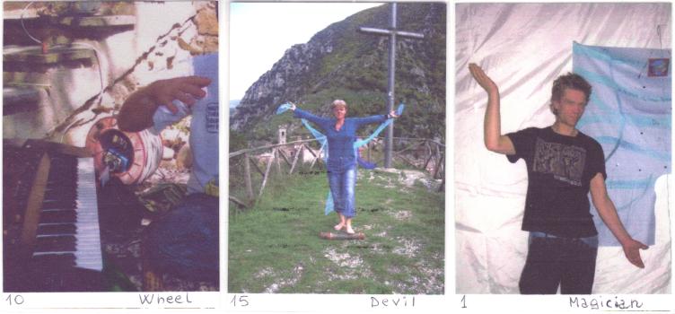 2 Apr 2008 On the 24th of March I promised to give you information about a tarot that obviously arose out of personal experiences. This is the Amo Tarot by Laura Cristin. It is a Majors only deck in an edition of only 22 copies. I have obtained number 1 of the 22. It is in ATC format and each card is signed on the back. It is not especially well produced, being printed on an inkjet on ordinary paper rather than proper surfaced photographic stock. It is laminated in those little lamination pockets with the rather sharp edges. Nevetheless it is a nice little tarot of photographs of the artists friends, many of whom appear to be musicians. This is the kind of tarot that most people look down upon and sneer at. It was produced in 2006 so I would expect that it will be difficult for people to find a copy, so I feel rather happy to have this obscure item in my collection. At first glance it would appear to be an amateurish naive effort, but Laura Cristin is a performance artist from Italy using the name SHEren, who together with Dario Della Rossa participated in the Festival Hermatena “Science, Art, Alchemy” 22-30 June 2007 on the occasion of the opening of the Museum of Tarots in Riola di Vergato (Bologna). Their performance consisted of a series of musical-visual pieces each related to one Arcana. Although the Amo Tarot looks amateur and naive, it is an emanation of an artistic personality fully engaged with tarot.