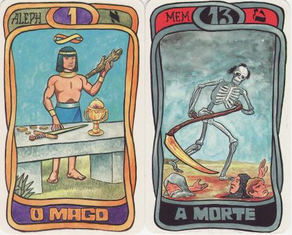 20 October 2008 There are a number of tarots issued in South American countries. Often it is difficult to discover these. A few days ago I found a Brasilian version Tarô dos Boêmios of the well known Papus Tarot of the Bohemians. This Brasilian version was printed with a book in 1992. The artist credited is Novaes - I am not sure if this is Heloisa Novaes. In any case the artwork is excellent.