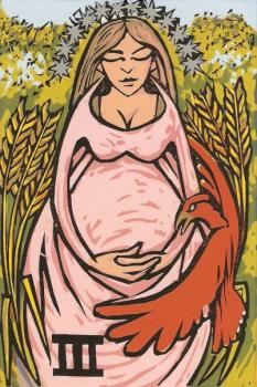 24 Mar 2008 Kerrie Carbary's Tarot of Mom finally arrived today. It was created using old fashioned scissors and paste collage in 2000, so it is strange that I only heard about it recently. Perhaps Kerrie Carbary has only just got round to printing it up in deck form. She has renamed many of the cards, but they are archetypally tarot images, and she provides a translation key. I must say I really like these unpretentious tarots that obviously arise out of some powerful personal experiences. Other collectors, oriented toward fine art, tend to look down on such items and treat them with a bit of disdain, and even contempt, but for me such decks are a key part of modern tarot. A few days ago I bought a similar production which should arrive soon, and I will be happy to show it to you on this weblog as soon as it comes into my hands. At the same time I also bought, at a very reasonable price, a copy of a fine art tarot, in the form of a series of large serigraphs, so I appreciate both fine art and outsider or naive art in tarot.