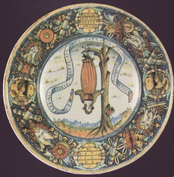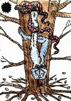 20 Feb 2008 Today I found this image of a maiolica plate (the white-glazed pottery of the Italian Renaissance) made in Deruta in Italy in 1510, which shows a female figure hung upside down by her feet from the branch of a tree. Although this is not a tarot image of the Hanged Man as such, it was created a few decades after the first painted tarot decks were made, and derived from the same emblematic tradition. It perhaps indicates how the tarot images were part of the wider current of allegorical emblems and classical mythological figures which informed the art of the 15th and 16th centuries. I cannot quite decipher the Latin text on her banner as it uses a number of contractions.