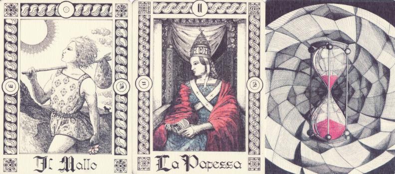 10 Feb 2008 I collect tarot imagery whether in the form of printed cards or illustrations in books, so I recently came across an Italian book, Tarocchi Interpretazione e Divinazione by Claudia Ramponi, published back in 1988, which contains at the rear of the book a series of line drawn tarot images which the reader is supposed to cut out and colour. They are rather conventional tarot images and the artist Maurice Bienvenu appears to have derived, but not slavishly copied, these from M. Guarnaccia's Nuovo Tarocco Ligure Piemontese of 1982, created just a few years before this book.