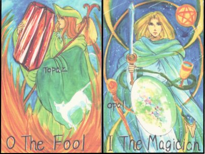 31 May 2008 I now have all the material for the next deck, the seventeenth, that I am going to issue in my art tarot series. I will work on the layout over the weekend, then hopefully begin the production next week, so it should be ready late in June, in about three weeks time. People have commented that there has been quite a gap since my last tarot publication. This has been primarily due to my having to give much of my energies to producing two new books in my alchemy series, and I also took some time earlier this year to make some oil paintings. I do actually have a number of tarots in the pipeline and these should gradually appear over the summer and autumn. 30 May 2008 The Alchemist Atelier Marie computer game was released in Japan in 1997. Also included in the box with the computer disc is a set of 22 tarot cards and a pen in the shape of Marie's staff and a small metal barrel. The cards depict characters from the game and some of these are shown in the accompanying booklet. Marie appears to own an alchemists' shop and consequently gets into various adventures. The artwork is finely drawn manga style with the female figures depicted with those large doe eyes.