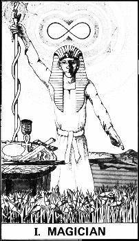 4 June 2008 I was recently able to buy a tarot which appears as illustrations in a book. I have been looking for this for some time and eventually one turned up. This is Egyptian style tarot illustrations by Paul Stephen Grayson for The Oracle of Thoth: The Kabalistical Tarot by R.A. Straughn, published in 1977. These are pen drawings with some applied graphic shading. They don't drawn on the late 19th century Wegener/Falconnier Egyptian tarot, but are an original concept. R.A. Straughn, known by his religious name, Ra Un Nefer Amen, a member during the 1970s of the Rosicrucian Anthroposophic League, formed the Ausar Society in 1975. Straughn became an occult teacher to the black community and around 1980 established an independent organization which applied the universal occult truths of Rosicrucianism to the Afro-American situation. He seems to be a fascinating character.