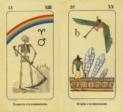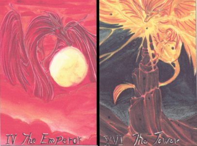 27 Feb 2008 Yesterday and today my broadband connection through Pipex went offline. I have been with this company for well over ten years and for much of that time they did provide a good service, however since December I have experienced three major outages, one lasting a week (though there were intermittent periods of connection), one of about 12 hours and the most recent lasting now over 36 hours. They are obviously having severe technical problems, however, their helpline staff are totally unhelpful, and even try and shift the blame onto my equipment, suggesting that I replace filters and routers, when they have a blanket email message on their phone helpline stating that they have a current outage ! So I have decided to shift away from them and find a new provider for my broadband. I am temporarily having to go back to an old 56K dialup modem which is ridiculously slow. Hopefully Pipex will get their system running properly shortly so I can go back to that. I will probably use the same company that provides my alchemywebsite.com site (of which this tarot site is a small part) to supply me with a broadband connection, as this site has not had any technical problems that I have noticed. 23 Feb 2008 I collect tarot decks, tarot illustrations in books and a few pieces of original tarot art. I see this as building a reference collection of modern tarot. I also collect digital images of tarot designs that I have found on the internet of complete decks and partial decks which someone has begun and not yet completed. I have hundreds of these unpublished decks, or abandoned designs. Of course many of these are in rather low resolution scans which the artist has put up on their own web site, or on one of the growing number of amateur art sites. Often it is difficult to locate things and I have to spend many hours laboriously going through the many finds that arise when one puts the word "tarot" into the art site's search engine. There are many wonderful decks out there, neglected and ignored. I would dearly love to publish some of these in cards form, but I have limited resources and can only do a few decks a year. Here are just a few examples from my digital collection.
