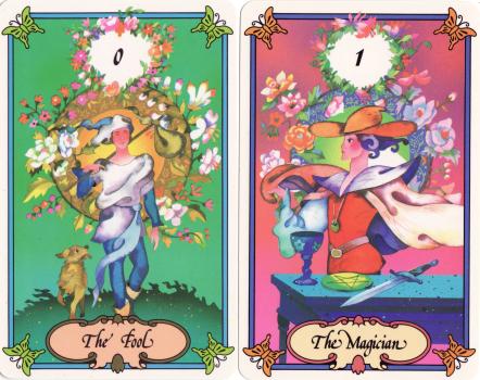 30 Mar 2008 In the last few days I have received another of those amazing Japanese tarots produced throughout the 1980's and into the mid 1990's, which adopted or mimiced Western art styles. This comes in the usual Japanese packaging for tarot during that period, a slip case with a book, and the cards safely presented in a foam cutout within a cardboard folder. This particular deck Asu ga Wakaru-Yasahil was published in 1990, and here the tarot images are presented against backdrops of kinds of floral wreaths. The foreground forms seem to have been painted in watercolours, with the backgrounds perhaps airbrushed or done with process colour as the gradations are so very smooth. This is not perhaps a deck of the first rank, but it is rather good to still have been able to find a copy of this relatively early Japanese tarot.