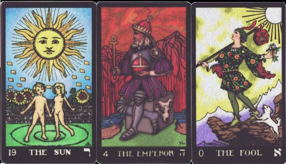 4 Jan 2008 The Sol Invictus - The God Tarot comes in a big heavy box, with those magnetic catches which are often found on Chinese tarot productions (indeed this tarot, though published in the USA was printed in China). The deck designs, which have been around for some time, are intended to redress the gender balance, as the creator felt that in recent times tarot imagery has been oriented more towards the feminine, with the masculine downplayed or even left out of the symbolism in some decks. So here, Kim Huggens and Nic Phillips have devised a 78 card deck with the card designs reflecting masculine Gods, Heroes, some real non-mythological males, as well as some characters from modern fictional works. Thus the Major arcana opens with Percivale as the Fool, Odin in place of the High Priestess, Jesus as the Hierophant, the Hermit as Nietzsche's fictional figure of Zarathustra. With the Minors I must confess I am sometimes on more unfamiliar territory with the Two of Swords being Papa Legba, a figure from Voudou, the Four of Swords being San Galgano (a Saint from Tuscany), the Ten of Wands is Giles Corey, a farmer in early colonial America who died under judicial torture during the Salem witch trials. Happily, more familiar figures such as Santa Claus, dear old Lucifer, Robin Hood, Socrates, and William Shakespeare are associated with cards from the Minors. The big box contains a 264 page book which, I suspect, most of us will have to read through to grasp the significance of the symbolism on each card. I don't think the deck is to be sold separately, as it would be rather opaque without the extensive commentary.