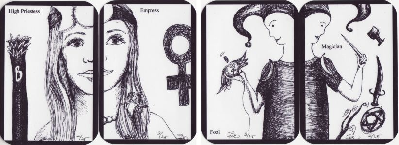 This morning I completed the production of the latest tarot, the eighteenth, in my Art Tarot series. This is the astounding Diary of a Broken Soul created by Ash in exquisite pencil drawings. I first saw this on the Tarot Deck Creation section of the Aeclectic Tarot Forum, and watched with amazement as it evolved and grew into a tarot deck. I am very happy to have been able to publish the Majors as a part of my growing series. As the artwork is so very detailed, I spent a great deal of time making sure that it was printed at the highest possible quality. This deck is now available through my