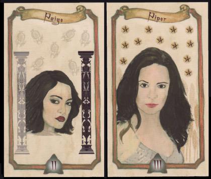 30 Nov 2007 I must admit to never ever having watched an episode of Charmed despite it being endlessly repeated on satellite television. Somehow, as a 59 year old man, I don't necessarily feel I have especially missed any significant life experience by clicking on the remote button to move on to another channel. But now, inexplicably, I am the proud owner of two tarot decks based on this series, one an official promo version by the French production company and the other a new unauthorised deck that has emerged from the UK in the past few days, the Charmed: Book of Shadows Tarot, in a limited edition of 500 copies. It is a 78 card deck with the pips and courts being non-emblematic and relatively conventional. The Majors, on the other hand, have at their centre a painted image in watercolour or acrylic, for the most part of one of the characters from the TV show, who presumably fits the particular arcana. The veracity of these ascriptions I cannot in any way judge, as I have no knowledge of who 'Paige', 'Piper', 'Gideon', 'Cole', or whoever, are. I must here confess that I would be equally lost if I were looking at a 'Buffy the Vampire slayer Tarot'. The official promo deck for Charmed was rather poor, consisting of stills from the show associated with each card. This unofficial deck seems to have a bit more thought behind it and at least uses some painted artwork. It is not an inexpensive deck and I wonder if, being unauthorised, it might not be interdicted by the intellectual property lawyers for the production company. We have seen a few of these actions resulting in the withdrawal of such products.