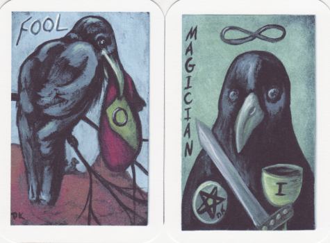 3 Mar 2008 Crows are remarkable birds, intelligent, mischievous, engaging but somehow attractive. So it is not especially surprising that a Crow tarot has now appeared. The Crow's Magick deck by Londa Marks is now well known, being issued by US Games back in 1998. That deck featured crows amongst other birds of prey, eagles, owls etc, and also a number of carniverous hunting animals, panthers, bats, a pterodactyl. But now we have a deck entirely devoted to crow imagery, created by Debra Klopp-Kersey, initially as individual ACEO cards, but now printed up into a 22 card deck. I was quick off the mark with this one and managed to buy copy 2 of the edition of 250.The deck comes in a rather fine hand textured box.