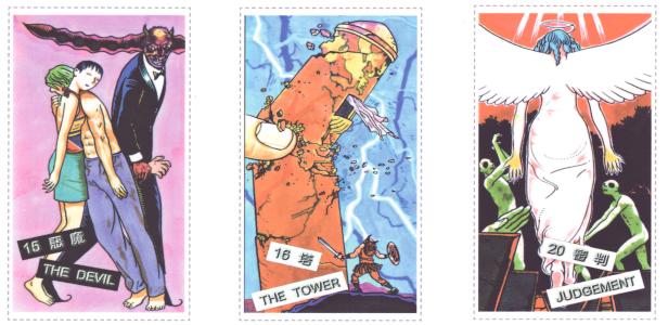 7 Jan 2008 I have just purchased another Japanese tarot, not this time published in Japan, but in Italy. It was a promotional deck issued by Yamato Shop in Milan. Yamato is one of the major anime production companies issuing DVDs. These cards were created by the manga artist, Hirohiko Araki, best known for his JoJo's Bizarre Adventures a long running series which he started in 1987, which had distinct links to Italy. These cards are described as the JoJo tarot. Apparently they were issued two at a time with the various DVDs. They are tarot with attitude! and with loads of humour.