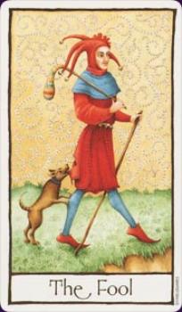 11 Apr 2008 I have just this morning come across this Cat Tarot painting. It is wonderfully cheerful and brightened up my day. ![]() The painting is still for sale click here. If I had the money available I would buy it immediately, frame it up and hang it my hall so I could see it many times a day as I walked passed. 10 Apr 2008 I found this little illustration from an English illuminated manuscript the Luttrell Psalter 1325 - 1340. This marginal image seems rather to reflect the tarot Fool. Of course, this image was created more than a century before the first tarot images were painted, and though I am not suggesting that it had any influence directly on the tarot, it was from such imagery that the tarot emerged.