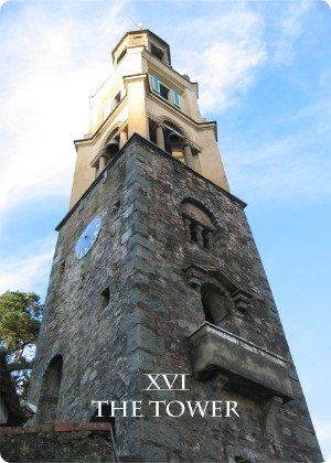 28 Jan 2008 Sometimes one muses on themes around which no one yet has yet created a tarot - a snake tarot, a drolleries tarot, an interplanetary and so on. But over the weekend I heard of a new tarot which I could never, even in my more expansive flights of fancy, have imagined a Tarot of Portmeirion. To many people the word 'Portmeirion' will mean nothing, but they will, as soon as they see photographs, nevertheless immediately recognise this village constructed down a cliffside on the coast of North Wales. It is a wonderful folly of eccentric architecture created from 1925 onwards by the Welsh architect Clough Williams-Ellis. Well known as a tourist site in Britain, it came to international prominence through being the setting for the 1967 surrealistic television series The Prisoner which starred Patrick McGoohan. Now Craig Conley has created a tarot deck based on his photographs of architectural features from Portmeirion. In the world of tarot someone always trumps ones imagination by invisaging a deck which one could never have thought up oneself.