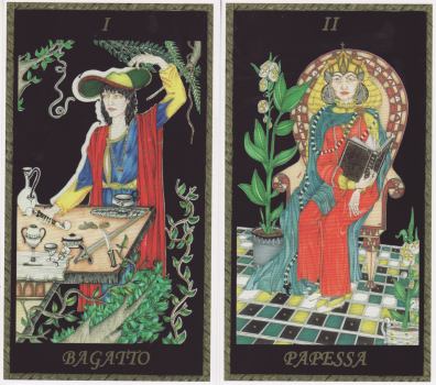 10 November 2008 The Museo dei Tarocchi in Italy has just issued some new tarots. Among these is the rather finely drawn and painted Tarocchi della Luna Nuova by Maria Teresa Monti. The figures seem quite detached, almost world weary. They are beautifully drawn and set against a black background which makes the subtle colouring a little more intense. This is a limited edition of 300 copies, and though there is no rush to buy, the publications of the Museo dei Tarocchi tend to sell out quite quickly. I suppose they have quite a following in Italy, the home of art tarot.