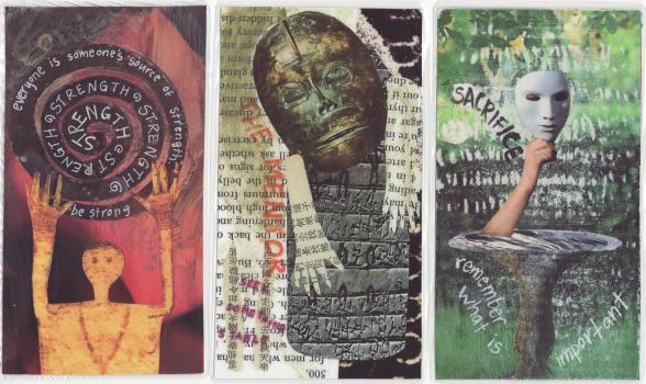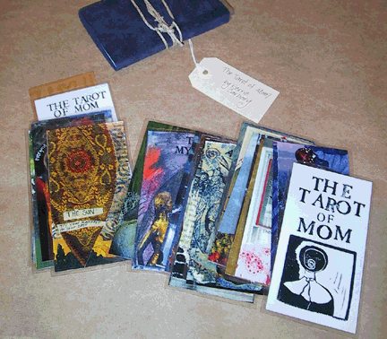 19 Feb 2008 I had thought that by withdrawing temporarily from my Tarot Collectors Forum and not let myself be a target I might let things cool down a bit, but after only a day one person posted yet another stupid message which was intended to annoy and inflame others to respond. I felt I had no alternative but to ban two of the offenders from the forum. I then received a rather puerile (and, of course, unsigned) email direct to my email address: NEW Stem Cell Research Tarot To: adam@alchemywebsite.com maybe it will help you grow a pair of balls. LOL my feeling is that everybody should experience everything in life at least once, and that includes being banned from tacky internet message boards. if that's the best you can do, you are indeed a eunuch It just confirmed to me what sort of people I had been struggling with. My discussion forum has obviously been targetted and an attempt made to undermine my work. To think that someone is so determined to stop a rather old, scholarly, man from trying to enthuse others about the artwork of modern tarot. I may be approaching 60, but I can assure people I have a strong will and determination and am not easily dissuaded by such childishness. 18 Feb 2008 I have just found a one of those rather interesting decks, that arise directly out of some personal family experience. This is Kerry Carbary's Tarot of Mom, a set of 22 collaged cards which was born out of and reflects her experience of a period in her life when her mother became very sick.