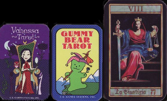 4 Nov 2007 Yesterday the Vanessa Tarot arrived and I found it was in a nice tin box. My mind immediately started churning and asking the question - how many tarots are sold in tin boxes? Well, immediately I thought of the Gummy Bear Tarot also issued by US Games in a tin. Then I remembered the rather fine art tarot by Carlo Pitera with its rather surly human figures, and perhaps equally unknown 13th Oracle Celestial Tarot, which also shows its human figures as somewhat gloomy and self-absorbed, though perhaps not as surly as Pitera liked to picture his figures. Another one I immediately recalled was the Savage Tarot which come in a tin with a glass panelled front. A week or so ago I just bought a second copy of this, as there are very few copies left to sell and this will, I am sure, in time be well sought after. I am sure I have a number of other 'tarots in a tin'.