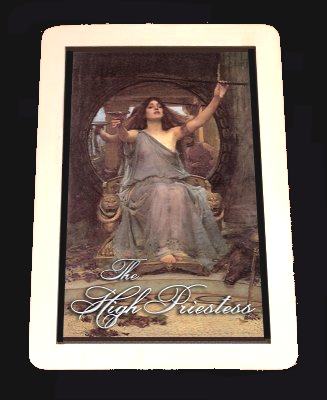 15 Jan 2008 Over the past few days there has been quite a lively debate on the Tarot Collectors Forum about a particular type of tarot deck, which one could describe as a tribute or perhaps attributive deck. Here the creator of the tarot takes the artwork of well known artists and tries to find aspects of their paintings which seem to echo or resonate with the tarot arcana. Of course, these artists were not intending to reflect tarot when they made their paintings, and this is essentially a recontextualising of their work as tarot images. It is an interesting exercise, though the results can be rather variable. It is not too difficult to find images paralleling the Emperor or Empress, but rather more difficult to find a Hanged man or Temperance. Yesterday by good fortune two examples of such decks arrived. One of these worked with the paintings of the Pre-Raphaelite artist John William Waterhouse. The creator of this deck, Endré Rousseaux, has mounted these images onto substantial 3 mm plywood and gilded the edges to produce some rather unusual wooden 'cards'. A year ago I bought previous set of these wooden tarot on the theme of Halloween imagery.