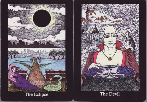 12 October 2008 I have begun making up a small batch of the remaining copies of the Corneal Edema tarot, the amazing Goth deck, and hopefully should have these ready early next week. When I issued this deck I only printed up half the edition, and it has not been available for some months. There are only forty copies left to sell, and I am making up some more of those. Hopefully I should sell some of these quite quickly in order to justify the time I will have to spend printing, laminating, cutting to cards and making up into the boxes.