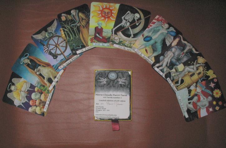 23 September 2009 I have now made up the final batch of the Marie-Claude Purro Tarot which has been unavailable for a few months as I had sold out the first 60 copies. I have now made up the final 40 copies. My apologies to people who have been awaiting copies. I had to give much of my Tarot production time recently to the new tarots the Ithell Colquhoun Taro and the Javanese Folktales tarot. I am currently working on the next tarot in my series, and also hope to print up another tarot which has been unavailable for a few months, for the same reason as with the Marie-Claude Purro deck.