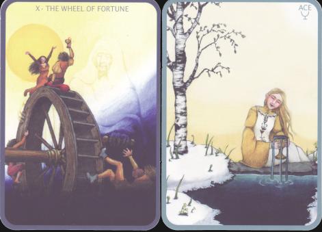 15 June 2009 A week or so back I received a copy of a 78 card Rider Waite clone from Poland with artwork by Robert Lichodziejewski. It is a rather nice production with large cards, is inexpensive and easily available internationally from various Polish online bookshops. It sticks close to the original images with a few quirky additions - I especially liked the aboriginal angels playing didgeridoos on Judgement. The minors mirror the emblematic forms on the Rider Waite.