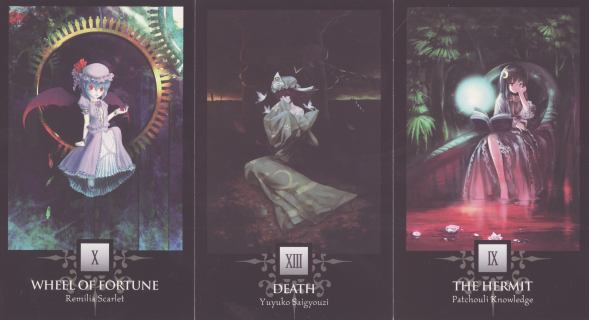 13 August 2009 I now have another of those Furoku tarot. This time from the Japanese magazine Love Fortune 2008. These are small cards which they printed on a single page. You have to cut them out. The artwork appears to be by a graphics artist called Miroku.