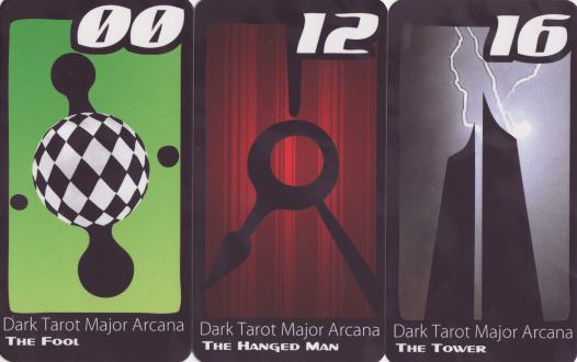 16 April 2010 The Dark Tarot Major Arcana printed in China by CaCaoBoi Studio as a limited edition, is an abstract and minimalist tarot. It comes with a book showing how to read the cards, and indicates that to the mind of the creator of this deck, Duncan, a kabbalistic system underlies his tarot designs. It is an unusual and stylish production, that will be difficult to source in the years ahead.