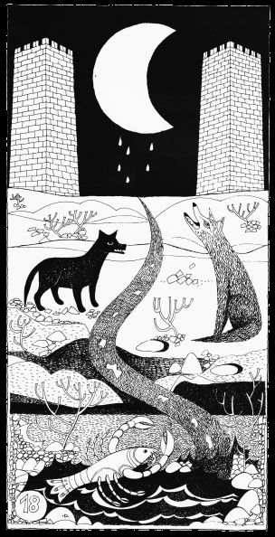 14 September 2009 I am usually unimpressed by the output of Lo Scarabeo. Their themed decks seem overworked and laboured with very conventional artwork. However, one of their recent publications the Tarot of the Sweet Twilight is a real gem shining out from the dross. I am not really sure what the deck is about, but the artwork is quite delightful and engaging. I found myself puzzling over some of the imagery, especially that on the pip cards. The artist has drawn on elements of puppetry, circus, Venetian masks, doll like forms set within surreal landscapes. The imagery coheres, and I found myself wondering if there was some story or subtext underlying the imagery on the cards. The style of the drawings reminded me a little of Shigeo Otake's Mushroom Tarot or that of Fergus Hall.