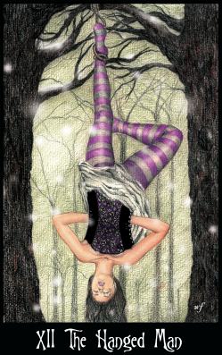 4 December 2009 Today I received a tarot card in the post. It turned out to be the Hanged Man from the Tarot of the Pomegranates. This is one of the most unusual marketing strategies for a tarot deck I have yet encountered. The artist An-Magrith Erlandsen sends out each card as they are completed. She appears to have begun working on this deck about ten years ago. As she intends a full 78 card deck, I estimate it will cost her more to post me the individual cards, than I originally paid her. It cost her nearly a dollar to post me this card. Apart from the rather strange economics of her production, the card designs themselves are wonderfully original and beautifully painted. Her Hanged Man dangles in a womb-like form over a labyrinth set in a landscape of various religious architectural forms, a Greek temple, an Irish round tower, a ruined church, a spiral tower like the minaret of the Mosque at Samarra, and other such buildings. In the sea below are sunken cathedrals visited by dolphins and turtles. A quite astounding conception. I look forward to the next letter from An-Magrith. ![]() 3 December 2009 Robyn Tisch Hollister has produced a number of tarot decks. Her latest is the Tarot Noir, a 78 card deck based on the Tarot of Marseilles pattern. The images have been painted in grey and white using large brush strokes, which produces a rather engaging painterly effect. The edition is limited to 100 copies.