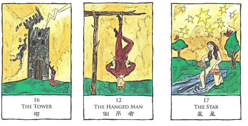14 July 2009 A month or so ago I received a copy of a tarot from China with rather creative artwork. This has been self published by Tran Kwang Inn. The imagery is transexual in beautifully coloured strong line drawings. This is a very fine production and will be well sought after in years to come.
