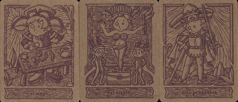 8 July 2009 While slowly waiting for some sales of my recent tarot I took delight in one of my recent purchases el Tarot de Marcelino by the prolific tarot artists Lynyrd Narciso. Usually he has his tarot designs published by a company, but here he has decided to self-publish. He has created a rather fine production printed on brown Kraft board in a dark burgundy ink. This creates a good effect, reducing the contrast and adding the background texture. It is a full 78 card deck and is provided in a sturdy box which opens like a book. This is well worth buying. There are few tarots issued in the Philippines. I hope he produces more of these tarots. I will be publishing a tarot by Ly in the next month or so.
