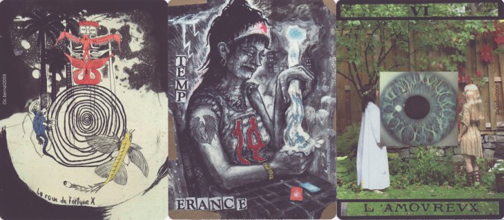 21 April 2010 Today I received a copy of the Tarot of Montreal which is a collaborative project involving 22 artists organised by Marie-Claude Bouthillier. The artworks, paintings, posed photographs, collaged images, and drawings are being exhibited this month at the Maison de la culture du Plateau-Mont-Royal in Montreal. The exhibition has issued a small edition of cards limited to 100 copies. A similar collaborative exhibition was recently held at the Hive Gallery in Los Angeles. I will dig out the cards and put some samples up on this weblog later.