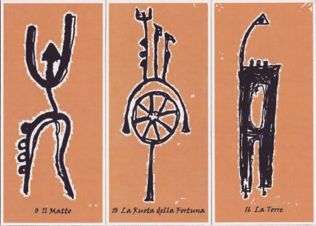 21 June 2010 I may be a fool but I have, however, published twenty three tarot decks over the last four years. Through my work I have enabled the work of these tarot artists to come into a printed form. But it now seems to have been a foolish activity, as completely uncreative people are scanning the decks I have produced and making them available on the internet. Their selfishness destroys the work of artists and publishers. Recent piracy, and the encouragement of others to scan tarot decks at print quality resolution and make them available through the Internet has been the final straw for me and has brought my business to a halt. I will not be able to continue producing tarot decks. I will continue to sell the remaining decks, but it is impossible for me economically to invest my limited capital and time in creating new titles that will be quickly pirated. Sadly, a number of artists will now not see printed editions of their work. I am a fool to have believed that people who care about tarot art would want to support and nourish the work of tarot artists. The foolishness may rebound on the pirates one day when they realise just how destructive they have been. They are responsible for these artists not seeing their work published. Are these artists fools for having wasted many hundreds of hours of their time producing a set of tarot designs never to see them published? The pirates and file sharers are killing tarot. They seem to be selfish self-justifying individuals without conscience. They obviously care nothing for the impact of their activities on the creative work of others. I leave a legacy of tarot publication, brought prematurely to an end by pirates. It could have been so much better. I could have continued for another five years except for these uncreative, parasitic individuals. On a positive note, I am continuing to work on producing the (now) final tarot in my series. I have almost completed the lamination and later this week will begin cutting the sheets into cards and making them up into boxes. Look out for an announcement about publication in a week or so. 18 June 2010 Today I received from Italy the Tarocchi Primitivi Africani. This is the work of the Senegalese artist Moussa Traore. It was created this year from an idea of Emilio Ortun Lieto and published in an edition of only 30 copies by Luca Vietti. The imagery is abstract and symbolic, but it is relatively easy to see the links to the ideas of the Major Arcana. There are so very few tarots with connections to Africa, so this one will have a valued place in my collection.