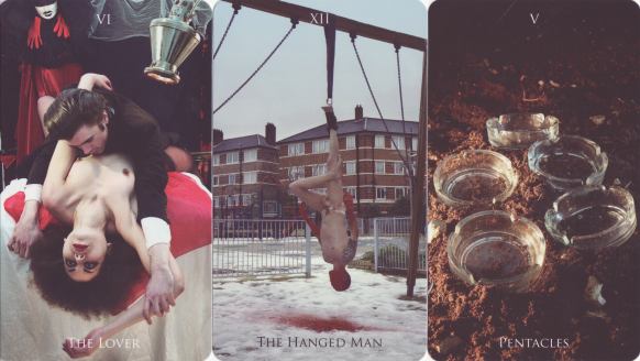 27 August 2009 A month or so ago I bought a new British tarot, produced as part of the SPILL Festival of Performance 2009. It is a collaborative deck featuring the work of twenty two art photographers. It was organised and coordinated by Robert Pacitti and Carla Esperanza Tommasini. The imagery on the 22 majors is a series of posed photographs of human forms set in tableau of complex symbolism. The pips and courts also use photographs this time of objects which reflect the card imagery. Photographic tarots are often dismissed by some collectors but this one is outstanding. I would place it alongside the Japanese photographic tarot of Yukinori Tokoro of 2001. The SPILL tarot is expensive, but will be an essential addition to any tarot collection whose owner takes delight in creative artwork.