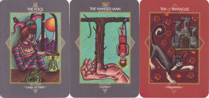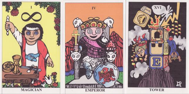 5 June 2010 I recently obtained the Russian version of the Transurfing Tarot which a month or so ago I bought in the form of an edition from Korea. 4 June 2010 I also found on Etsy the Tiny Tots Tarot Major Arcana by David Myriad. This is a rather sweet stylised deck, based on the Rider-Waite majors. It is printed on an inkjet printer and is inexpensive though nicely produced.