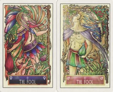 12 April 2010 Last week I received the latest tarots by the Philippine artist Lynyrd Narciso. Among these is a delightful art nouveau style deck, the Tarot Bagong Sining. This is in the form of a double set of majors, one of which is masculine and the other feminine. This deck has been limited to only 45 signed copies which will ensure its value for future collectors. It is beautifully drawn and subtly coloured. In the hands of a lesser artist the colouring could have been gaudy and overwhelmed the underlying drawings but Narciso is a master of subtlety and the two facets of his artwork harmoniously work together. ![]()