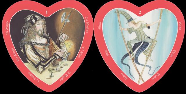10 March 2010 My tarot collection has now passed the 2000 mark.When I first started seriously collecting tarot, I never thought I might be able to amass this number. Building this collection has required a considerable investment of my time and money. How much further I can go I am not at all sure. This collection exhaustively documents the phenomenon of tarot in our age. It has been collected by an outsider to tarot itself, as I have no interest in using cards for divination. My main focus is on the artwork. Perhaps one day the artwork of modern tarot will be seen as a subject worthy of study, rather than being marginalised by the art community as it is at present. My collection is a significant resource for a proper study of tarot art. I am not sure what to arrange to do with the collection in the longer term. It would be sad if it had to be broken up and sold off piecemeal when I was older or when I die, however, I do not have the financial resources to endow this collection to preserve it indefinitely. Over the next few years this will be a pressing problem for me. 9 March 2010 There are round, square, oval, hexagonal, triangular tarot cards and now a heart shaped one. This Heart Tarot has been issued by Lo Scarabeo and comes in a solid heart-shaped box. The artwork by Maria Distefano is very original and she creates some rather interesting and novel takes on tarot imagery. She fully exploits the geometry of the heart shape with its two lobes, resisting the obvious device of merely depicting polarities, reserving this for cards such as the Lovers, the Chariot and a few others. ![]()
