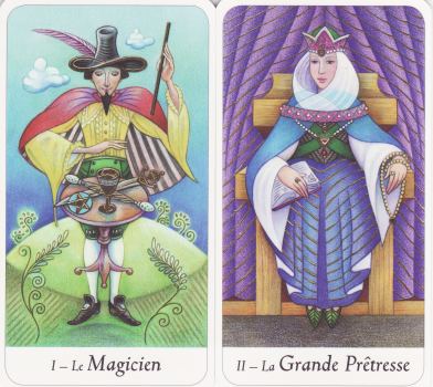 28 March 2010 A few days ago a fellow collector alerted me to a majors deck of original art included with a French graphic novel called Faery City. This was written by Mathieu Gaborit with artwork by Amandine Labarre. The imagery which is linked to the narrative of the novel is very good and it coheres as a tarot deck. The Fool is depicted as a blank image.