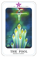 25 April 2010 The Macrocosm Power Tarot created by Kei Nakagawara is issued as a series of cut out cards in a Japanese health and style magazine for April 2010. The imagery is diffuse and ethereal. The original paintings appear to be in gouache or water based acrylic and most have areas of opaque white dragged over to form little veils.