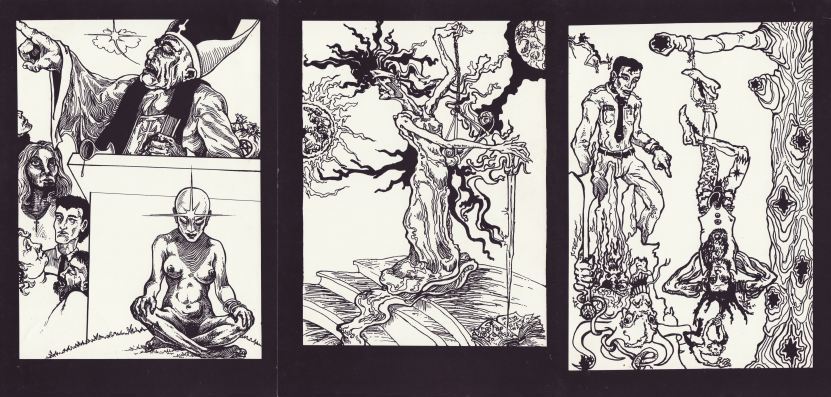28 December 2009 Bolt Cutter Design in the USA have recently issued the Oblivion Tarot in two separate versions. First we can consider the Oblivion dark deck. This has a palette restricted mainly to brown and red tones. The edition is limited to 100 copies. The Minors follow quite closely the Pamela Colman Smith designs for the Rider Waite deck. The Majors are a mixture of the Rider Waite imagery with a few individual departures such as the Magus.
