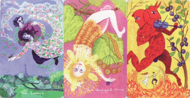 5 June 2010 I recently obtained the Russian version of the Transurfing Tarot which a month or so ago I bought in the form of an edition from Korea. 4 June 2010 I also found on Etsy the Tiny Tots Tarot Major Arcana by David Myriad. This is a rather sweet stylised deck, based on the Rider-Waite majors. It is printed on an inkjet printer and is inexpensive though nicely produced.