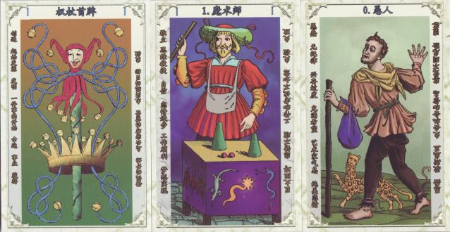 6 February 2010 The latest tarot in my Art Tarot series, The Goth Tarot created by the Spanish artist Winny, is now available. As is my normal custom I offer the first 20 copies at a small discount. I have already sold fifteen copies to my regular customers, so those who want one at the discounted price should click here. When the goth community discovers it, I hope to sell quite a few copies 5 February 2010 I just obtained a copy of a new Chinese version of Giovanni Vacchetta's famous 1893 deck. This has been issued in coloured versions by various Italian publishers, including Solleone, Menegazzi and Lo Scarabeo. This version by Harbin Publishing House in North eastern China, comes in a large box with a large book. For their edition they have redrawn the images, closely following the original and these are sensitively coloured with good modelling though perhaps let down a little by the background graduated tones, however, I prefer this version to the Tarot of the Masters with its overworked 'aged parchment' backgrounds.