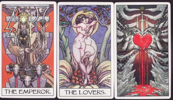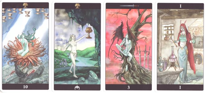 22 January 2010 This afternoon I finished production of the next tarot, the twenty second, in my Art Tarot series. This is The Goth Tarot created by the Spanish artist Winny. As you will see her drawing is strong and assured and her colouring a delight. As soon as I saw these images I wanted to publish her deck. Click here to buy a copy. The first 20 copies are offered at a small discount