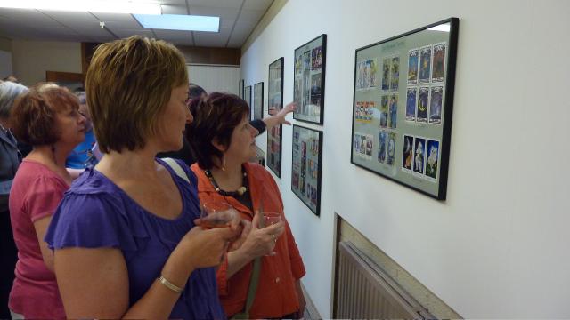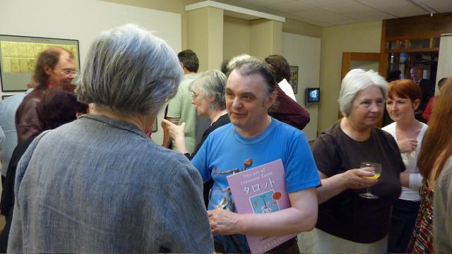 This is the twentieth tarot in my ever growing Art Tarot series which was set up to allow wonderful tarot decks like this to be published in card form. 1 July 2009 Today I finished cutting up the next tarot deck in my Art Tarot series. It really looks wonderful. I will have to spent a day or so making them up into boxes and then prepare the advertising and payment buttons onto my web page. So it should be ready, say on Friday. Look out for the announcement ! 30 June 2009 Here are some photographs from the opening night of my 'Art of Japanese Tarot' exhibition at Kilbirnie. This is the second showing, the first was at the Glasgow School of Art. I am the rather out-of-place buffoon in the blue Salvador Dali tee shirt, as it was so hot I just could not bear wearing a shirt and jacket. My colleague Ronnie Heeps who curated the exhibition was smartly and rather formally dressed - you can see us both in the final photo.