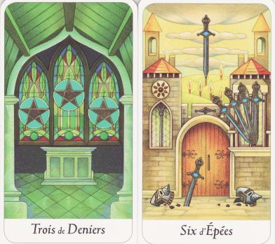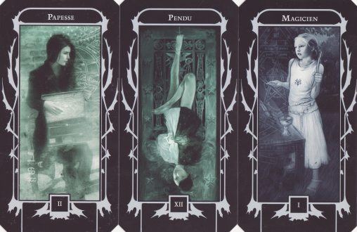 28 March 2010 A few days ago a fellow collector alerted me to a majors deck of original art included with a French graphic novel called Faery City. This was written by Mathieu Gaborit with artwork by Amandine Labarre. The imagery which is linked to the narrative of the novel is very good and it coheres as a tarot deck. The Fool is depicted as a blank image.