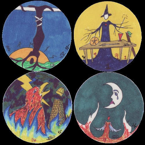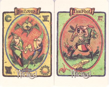 10 March 2009 Tarot collecting is often a serious business, but sometimes it has its amusing moments. Some years ago I saw for sale some beer glasses made for Pete's Brewing Company of Palo Alto in California. I decided not to buy them, but a few days ago I found instead four beer mats (or do they call them 'coasters' in the USA). I managed to buy all four for a few Euros. Pete's Wicked Ale seems to have adopted four tarot cards as emblems for their beer. The mats I now have are, I am glad to say, unstained with the usual rings left by beer glasses.