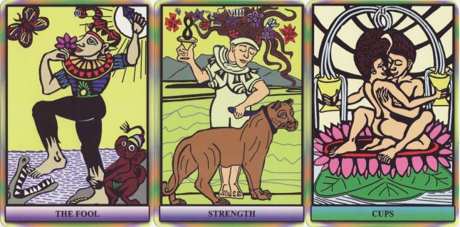 14 July 2009 A month or so ago I received a copy of a tarot from China with rather creative artwork. This has been self published by Tran Kwang Inn. The imagery is transexual in beautifully coloured strong line drawings. This is a very fine production and will be well sought after in years to come.
