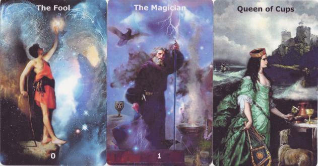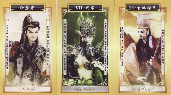 That part of my shelf space devoted to Chinese and Taiwanese tarots is crammed with lots of those big-box tarots. Anyone who buys these decks will know what I mean. A big strong solid box with a magnetic fastening flap, inside lined with a satin like material, containing a small paperback book and the deck of tarot. This one is entitled The Fantasy treasure tarot box and is a 78 card deck, with the familiar elongated format that the Chinese seem to prefer, based, no doubt, on their playing card tradition. This present tarot, like a number of others I have, presents fantasy artworks on tarot cards. It is a compilation from different artists. These artists do not seem to be credited. The pips do not have any emblematic artwork. The choice of images for the Majors is quite apt.
