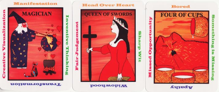 25 May 2009 I just bought a copy of the Motherwell Tarot created by Canadian psychic Dickie Motherwell. The designs for this full 78 card deck are quite simple. They are perhaps designed especially to help the reader as they have keywords on the four sides of the card face.