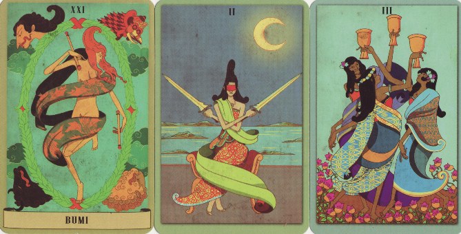 3 July 2009 I have now finished the next tarot in the Art Tarot series. This is The Javanese Folktales Tarot with wonderfully harmonious artwork by Andhika Wijaya. You can see details and buy it by clicking here.