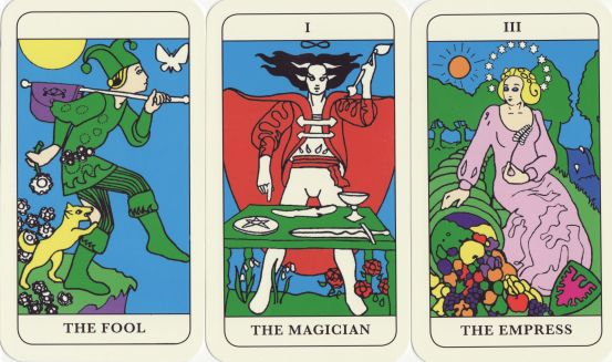 26 November 2009 Kazuki Takahashi is a manga artist, illustrator and game creator who created the manga Yu-Gi-Oh! This later appeared as an anime and a number of spin offs including video games. I have obtained a small tarot deck using his artwork, published by the Shueisha Publishing Co, one of the major publishers of magazines in Japan. The original manga images are presented on a background layer of a line drawing of a wall panel from an Egyptian tomb, thus perpetuating the idea that tarot was somehow connected to ancient Egypt, a common preconception in the 19th and early 20th centuries.
