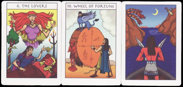 17 October 2009 Mike Indovina is a graphic artist working in the style of comic books, through his publishing company Satyr Play. He is also inspired and enthused by Greek Mythology of which he is obviously very knowledgeable. He has even gone so far as to produce a 100 page comic book entirely on this theme The Grand Tour of Greek Mythology relating the entire timeline of Greek Myth in chronological order, from the creation of the universe to the founding of Rome. He has now issued his Silenus Tarot again drawing extensively from Greek Mythology. For his 78 card deck he had very cleverly managed to find classical Greek mythological stories to link with each of the 78 cards including the familiar Patricia Colman Smith images to the minors in the Rider-Waite deck.